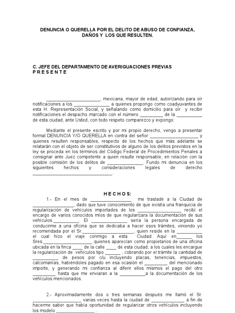 Denuncia O Querella Por El Delito De Abuso De Confianza via es.scribd.com